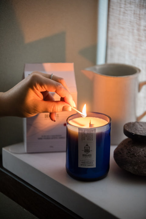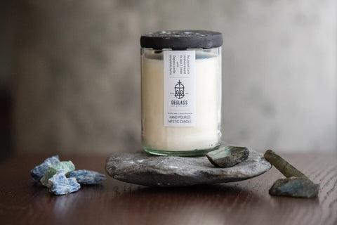 natūralus sojų vaškas, medinė dagtis, eterinių aliejų kvapo formulė, kurta parfumerio, laikantis mūsų ideologijos, rankų darbo keramikos dangtelis - kaskart nepakartojamas, stebina unikalumu ir antrinio panaudojimo stiklo indas, kuris gyvena dar kartą.